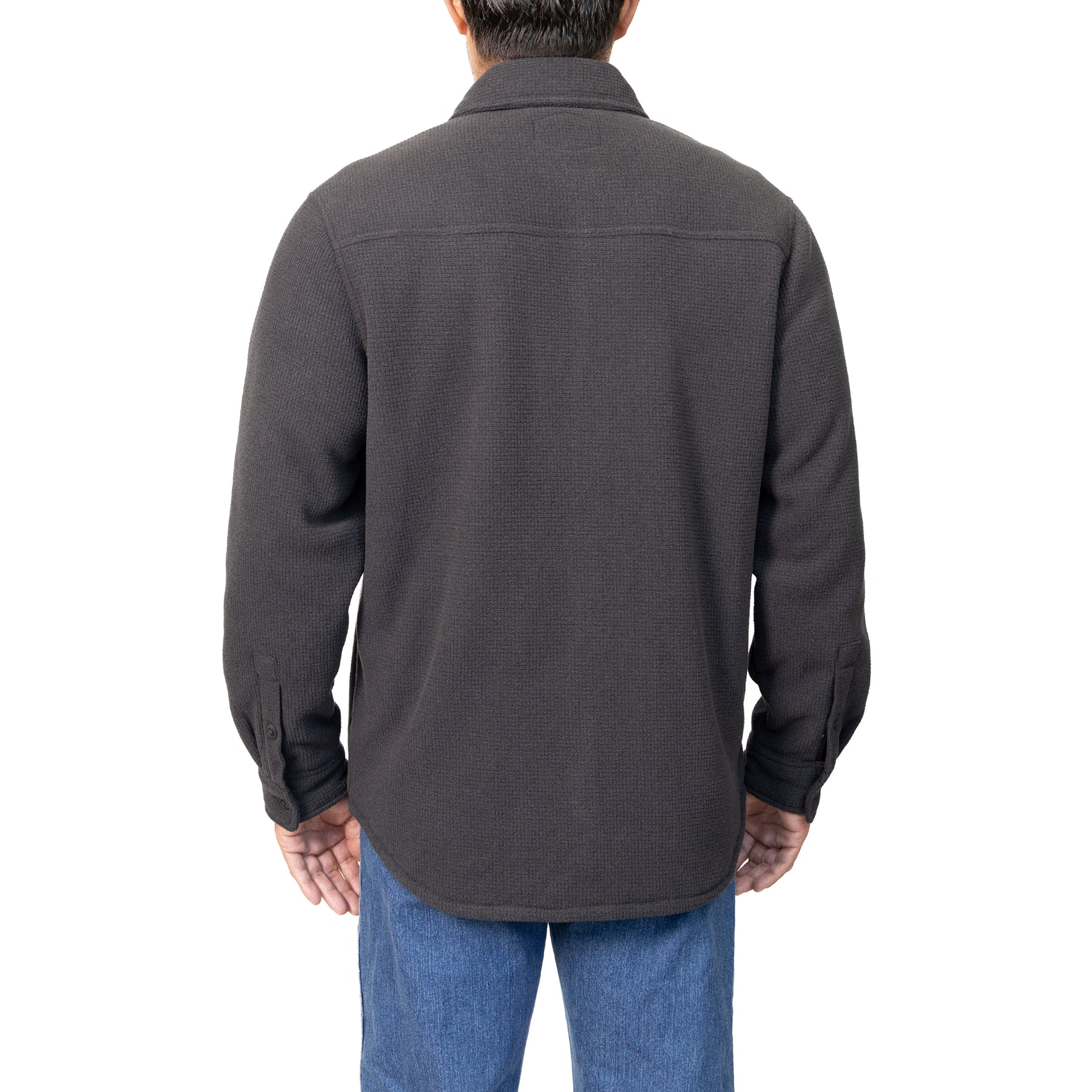 We found an awesome textured fleece fabric and bonded everyone's favorite sherpa lining to it, creating a subtle alternative to our classic plaid super plush shirt jacket.
