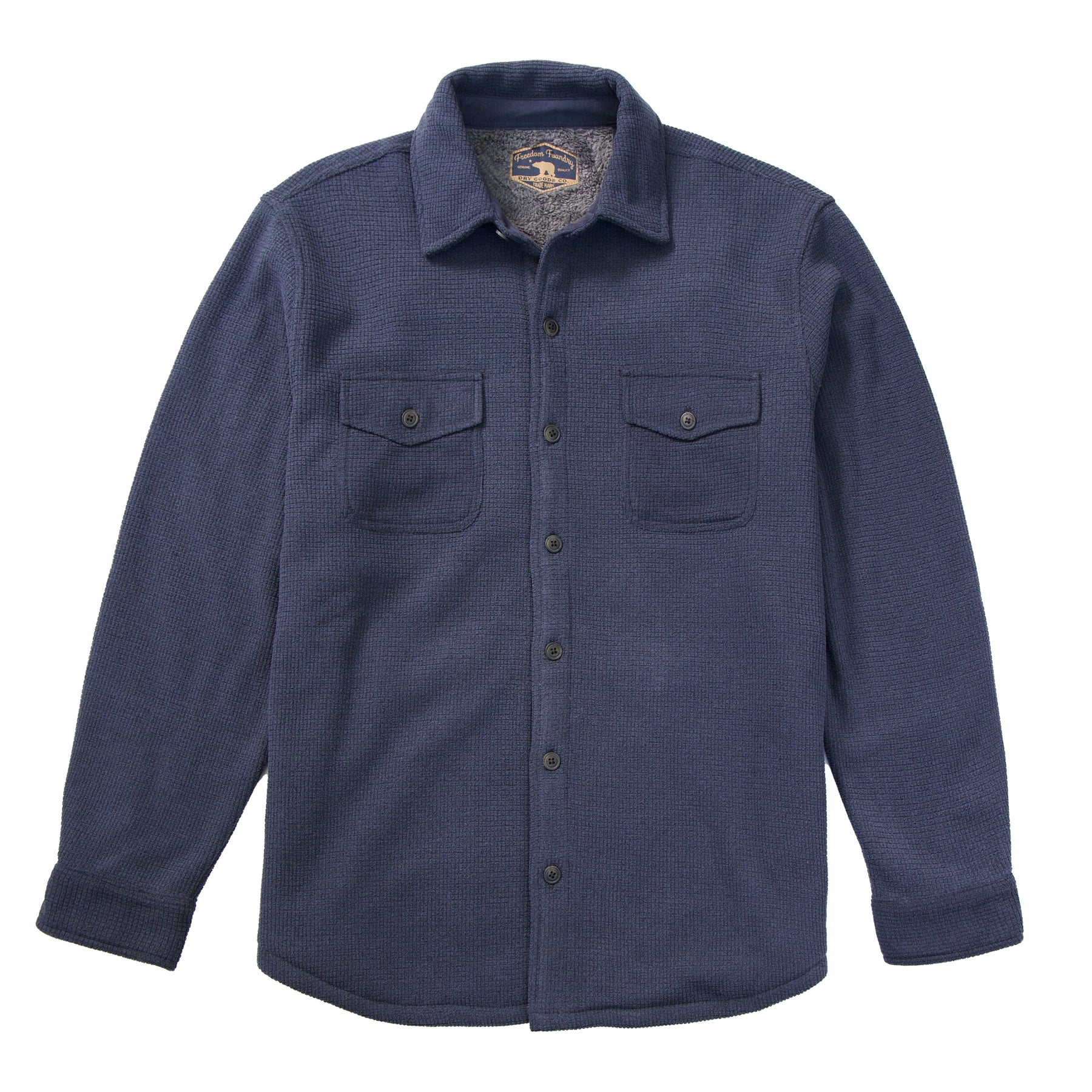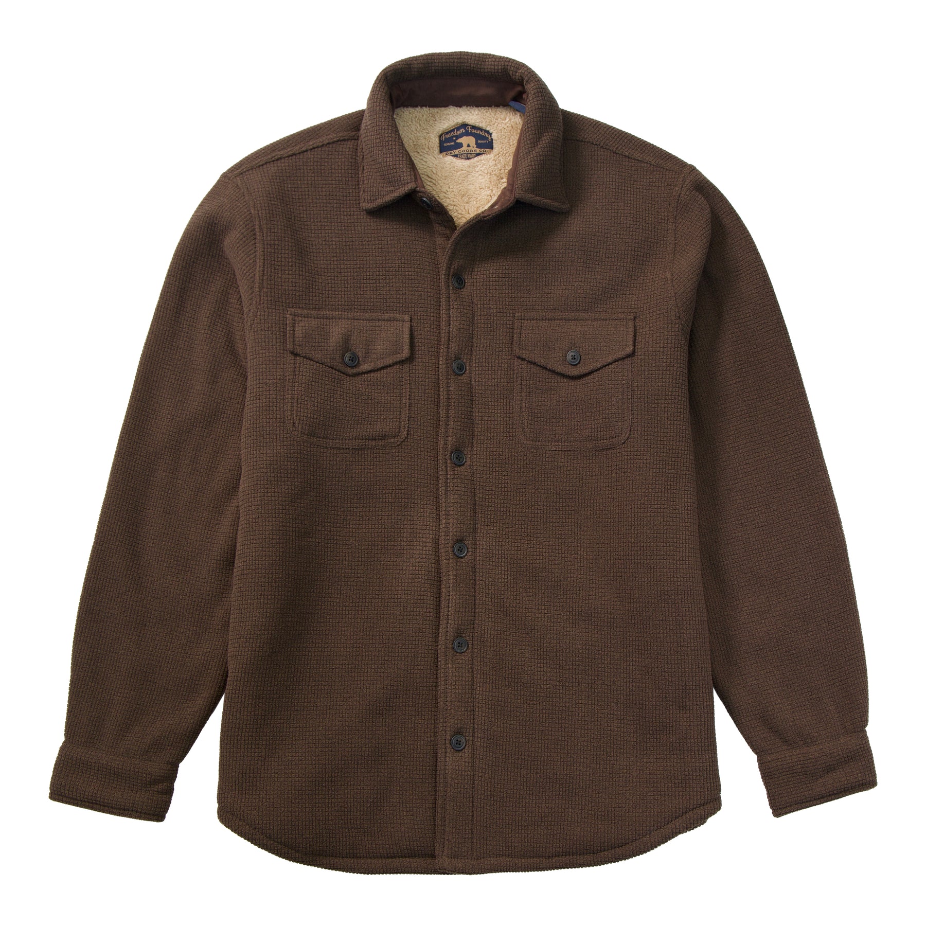 We found an awesome textured fleece fabric and bonded everyone's favorite sherpa lining to it, creating a subtle alternative to our classic plaid super plush shirt jacket.